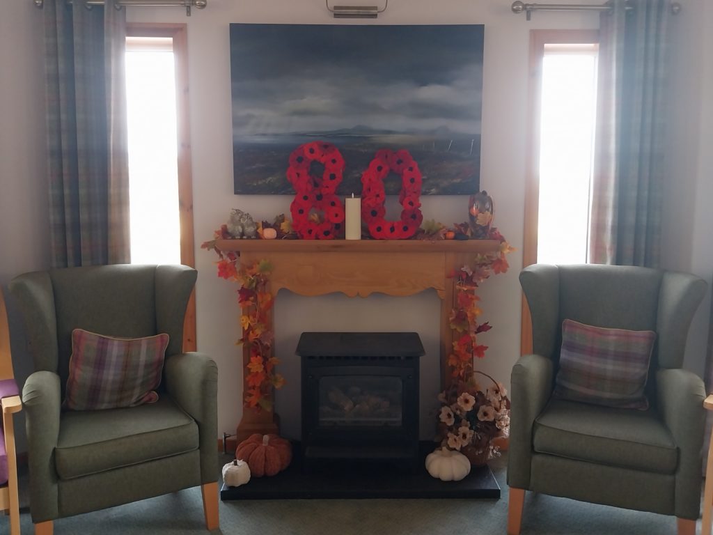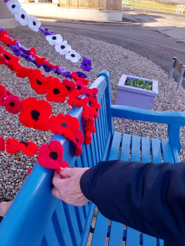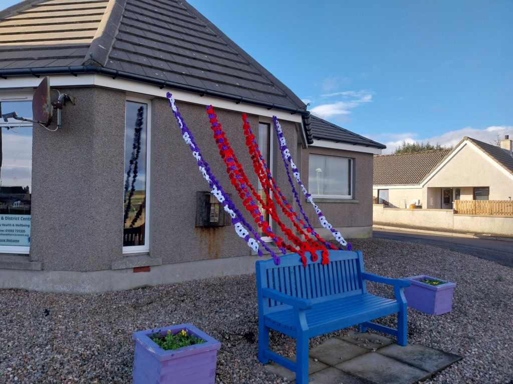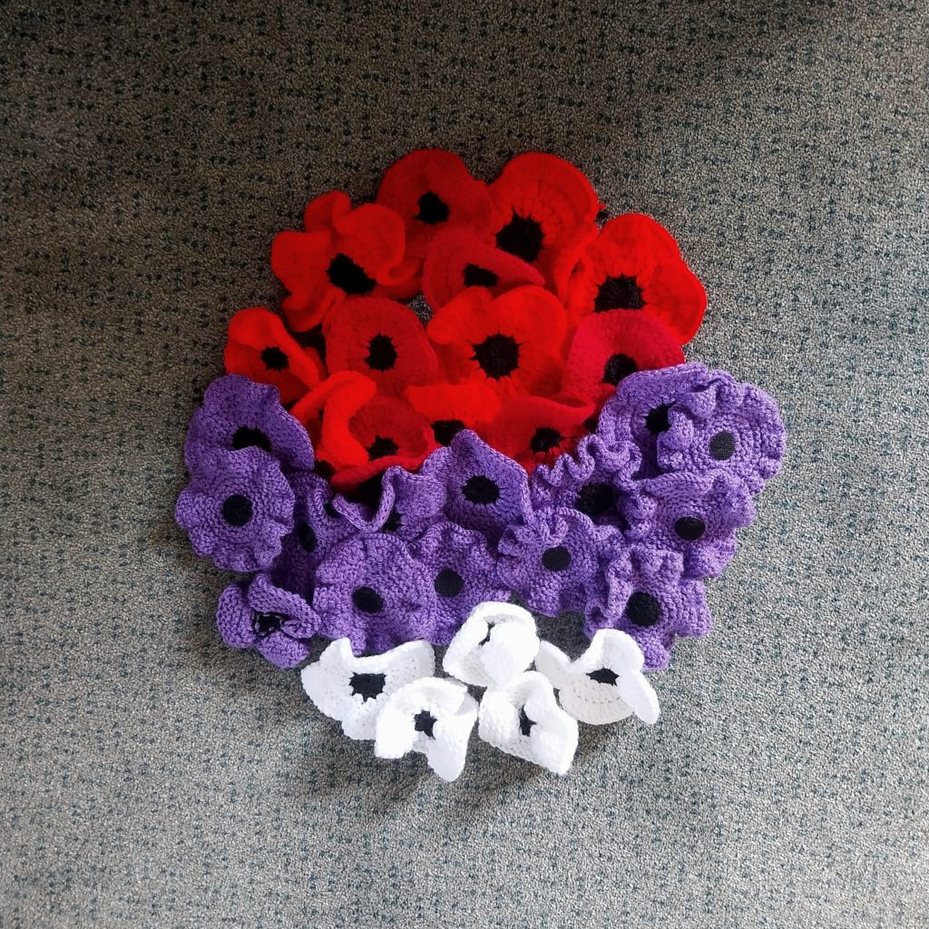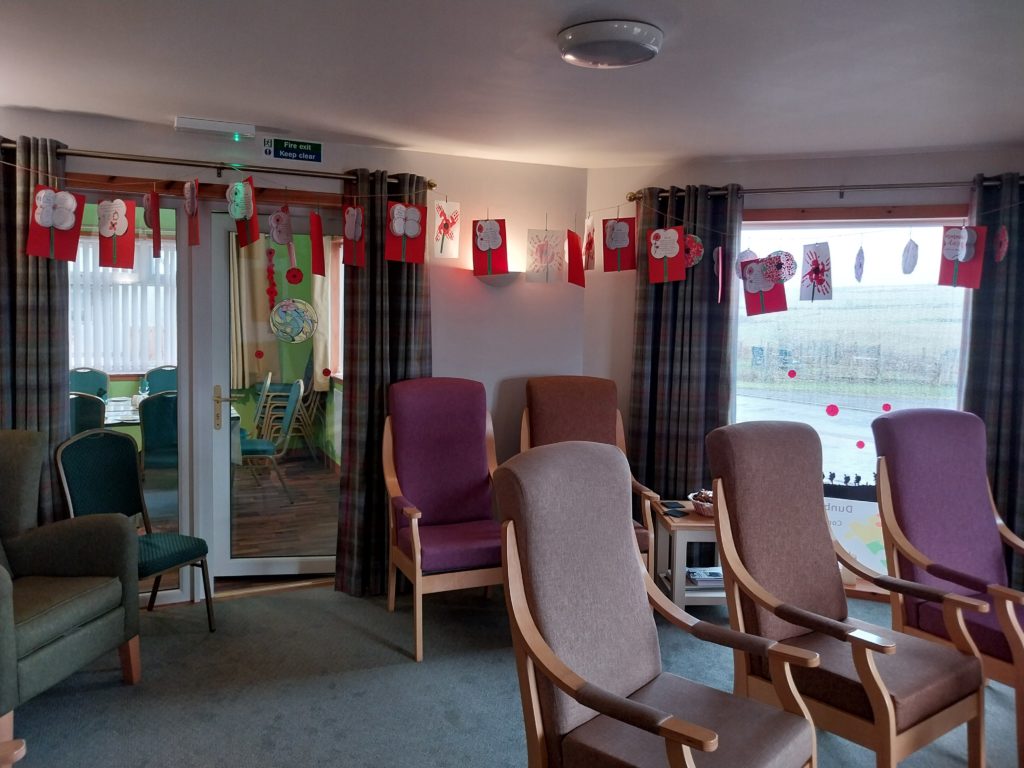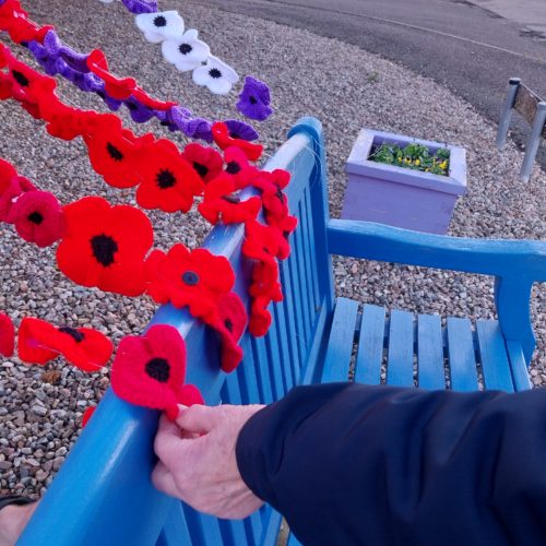 Our goal was to create a display of knitted and crocheted poppies to brighten up our centre and give a memorial for any who put in their services.