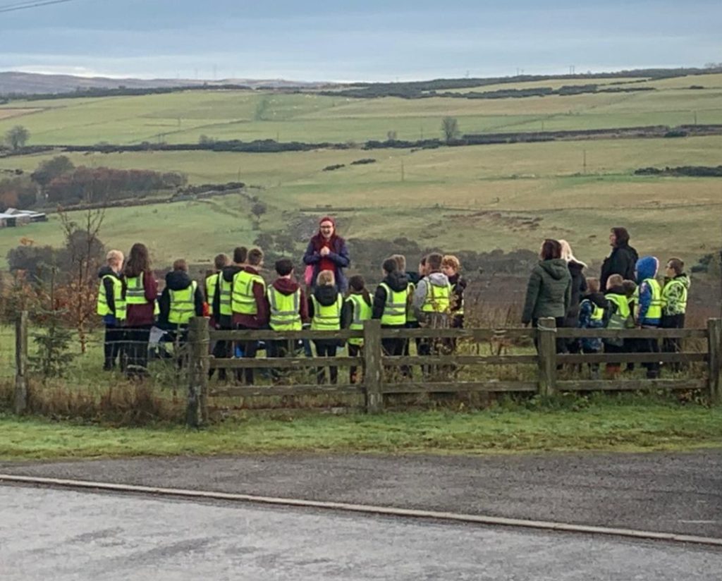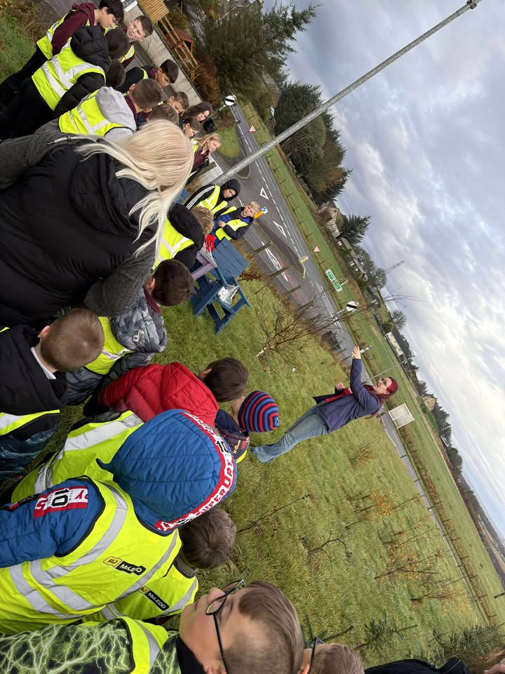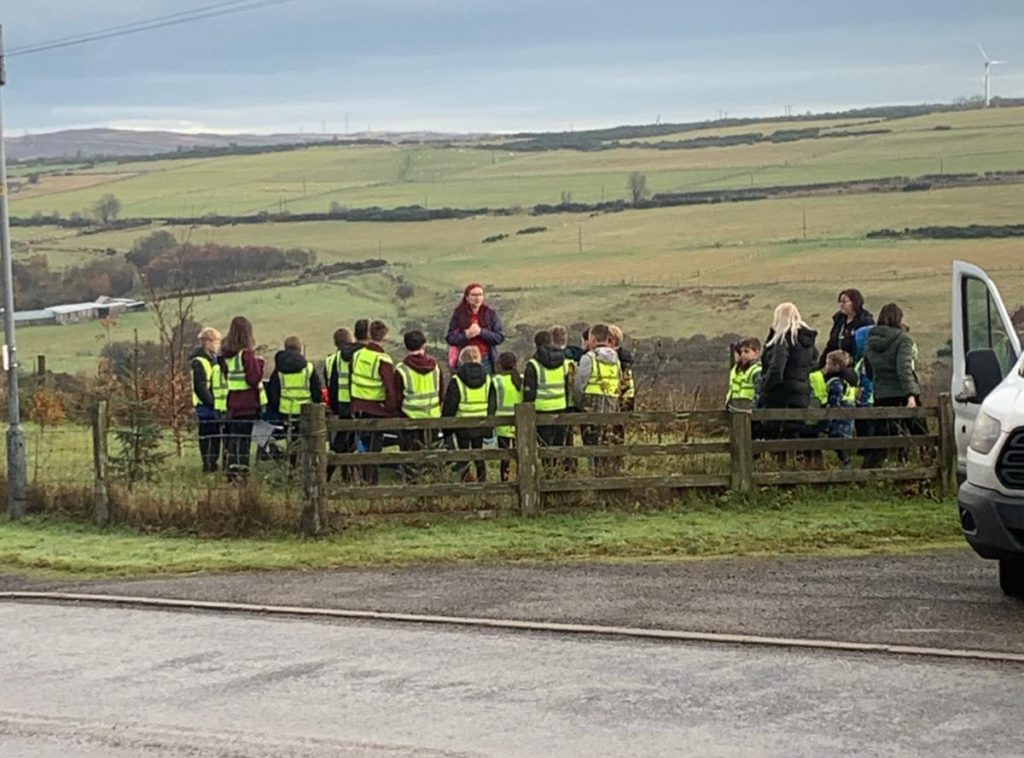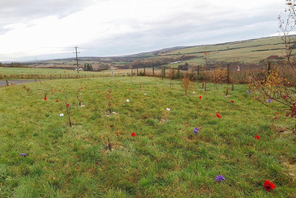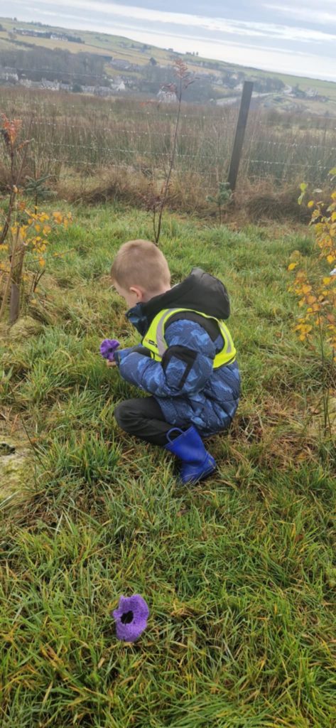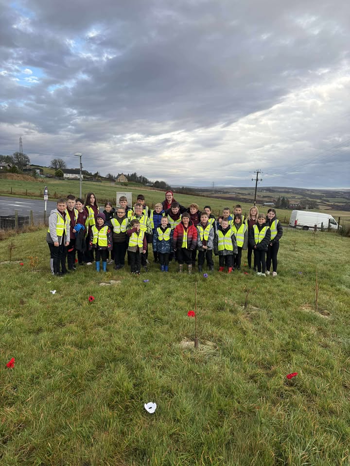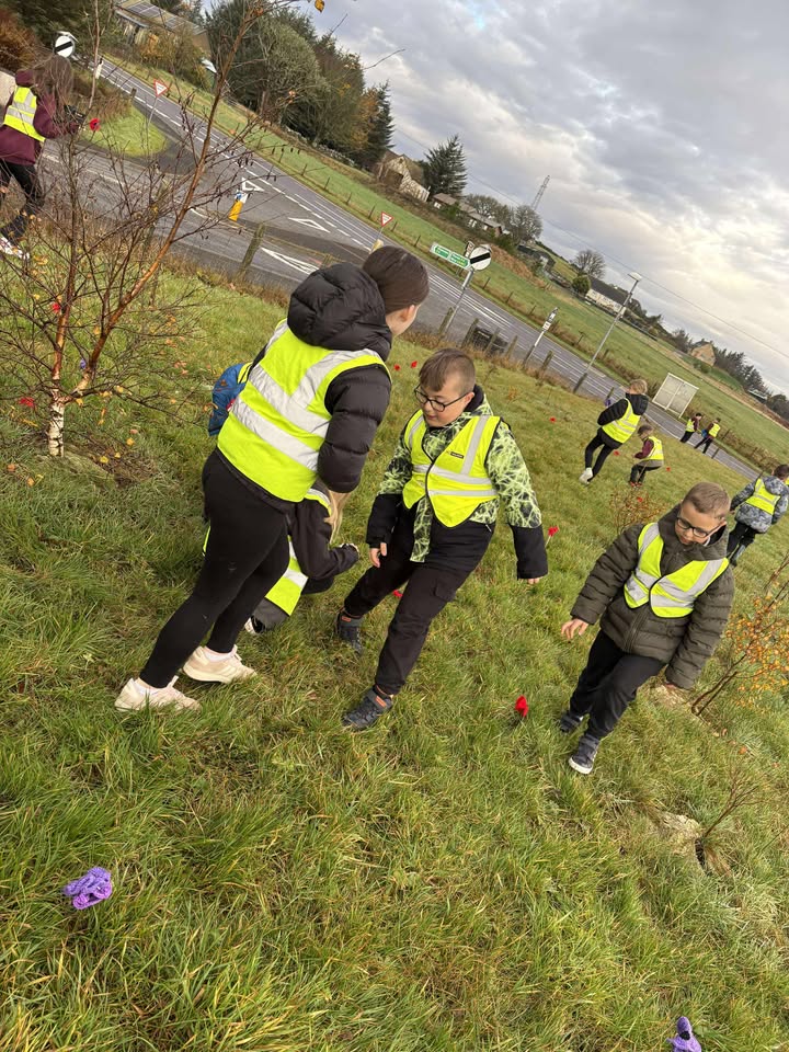 Then we have our incredible team of little helpers, our hot gluing efforts gave us 90 poppy pegs to put into the ground at the memorial garden across the way, and to save our spines from breaking popping them in one by one we asked the excellent staff at Dunbeath Primary School if we could borrow their finest workers (our wonderful local students) for a hard morning of construction.