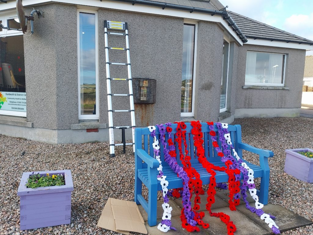 What a challenge that turned into, but worth every hour, we consulted with Caithness Community Connections who have been helping organise and put up remembrance displays all throughout Caithness on what to use and how to connected them and we got stuck in knees deep to the challenge!