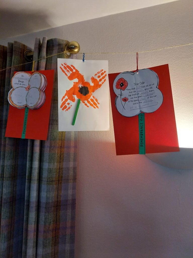 After they filled our garden with poppies they made us one final remembrance gift just in time for the 11th of November, which was a beautiful collection of remembrance artwork which reflected the emotions you might feel, the stories behind the day and some beautifully crafted poppies, cut out or painted hand prints. (hopefully they didn’t make too much of a mess!)