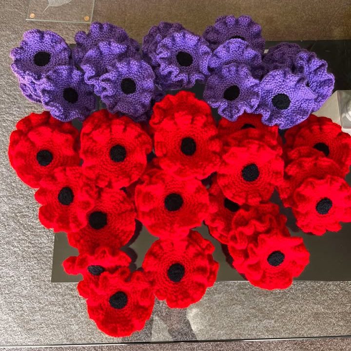 The were making 3 varieties of poppies, the standard red poppies the most famous symbol used to commemorate those who sacrificed their lives in World War One and conflicts that followed, and is most often connected to the veterans charity Royal British Legion. We have purple poppies next which represents animals like horses, dogs and pigeons that were often drafted into the war effort, and those that wear the purple poppy feel their service should be seen with equal importance.
