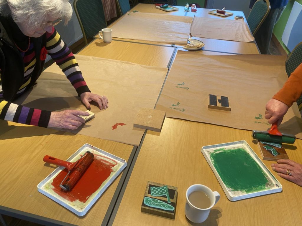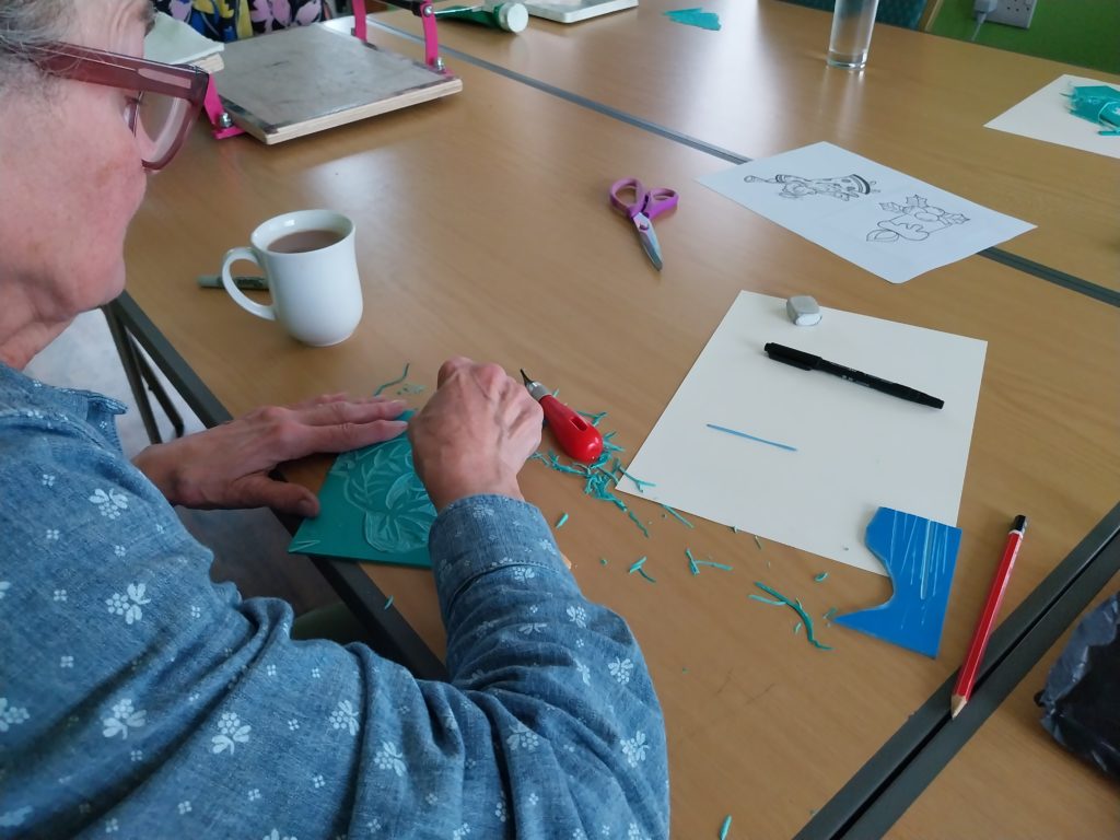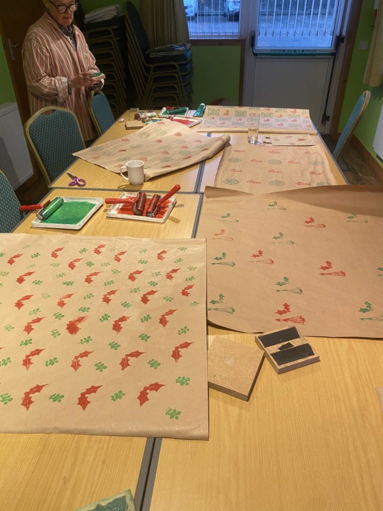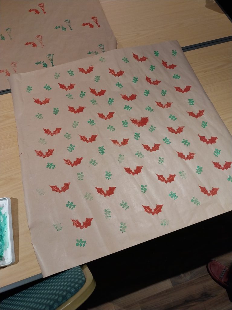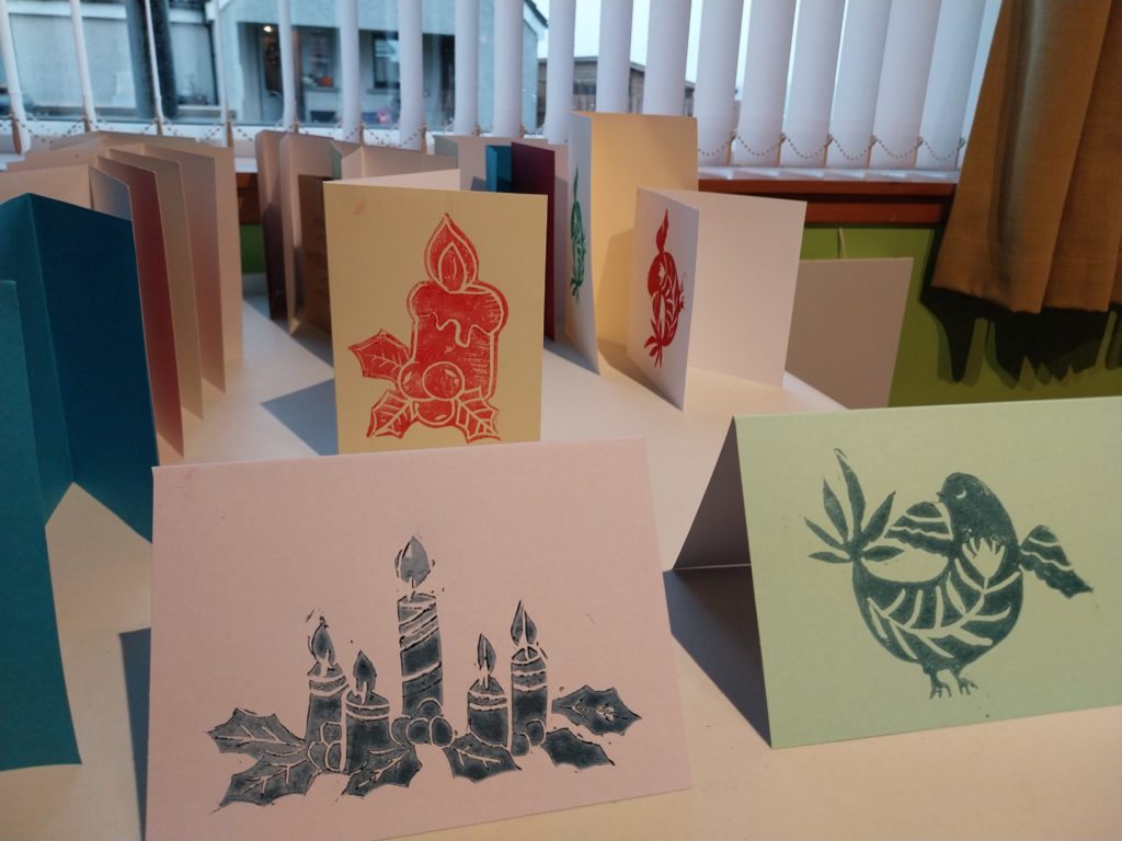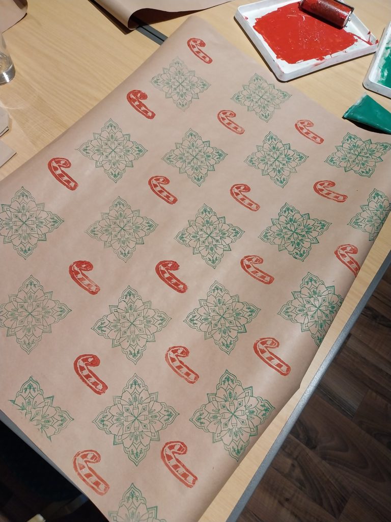 First we invited the lovely Ellie Sheales to give us a class on Lino-printing, this was a learning curve over 3 weeks, designing, carving and printing our very own cards and wrapping paper for Christmas.